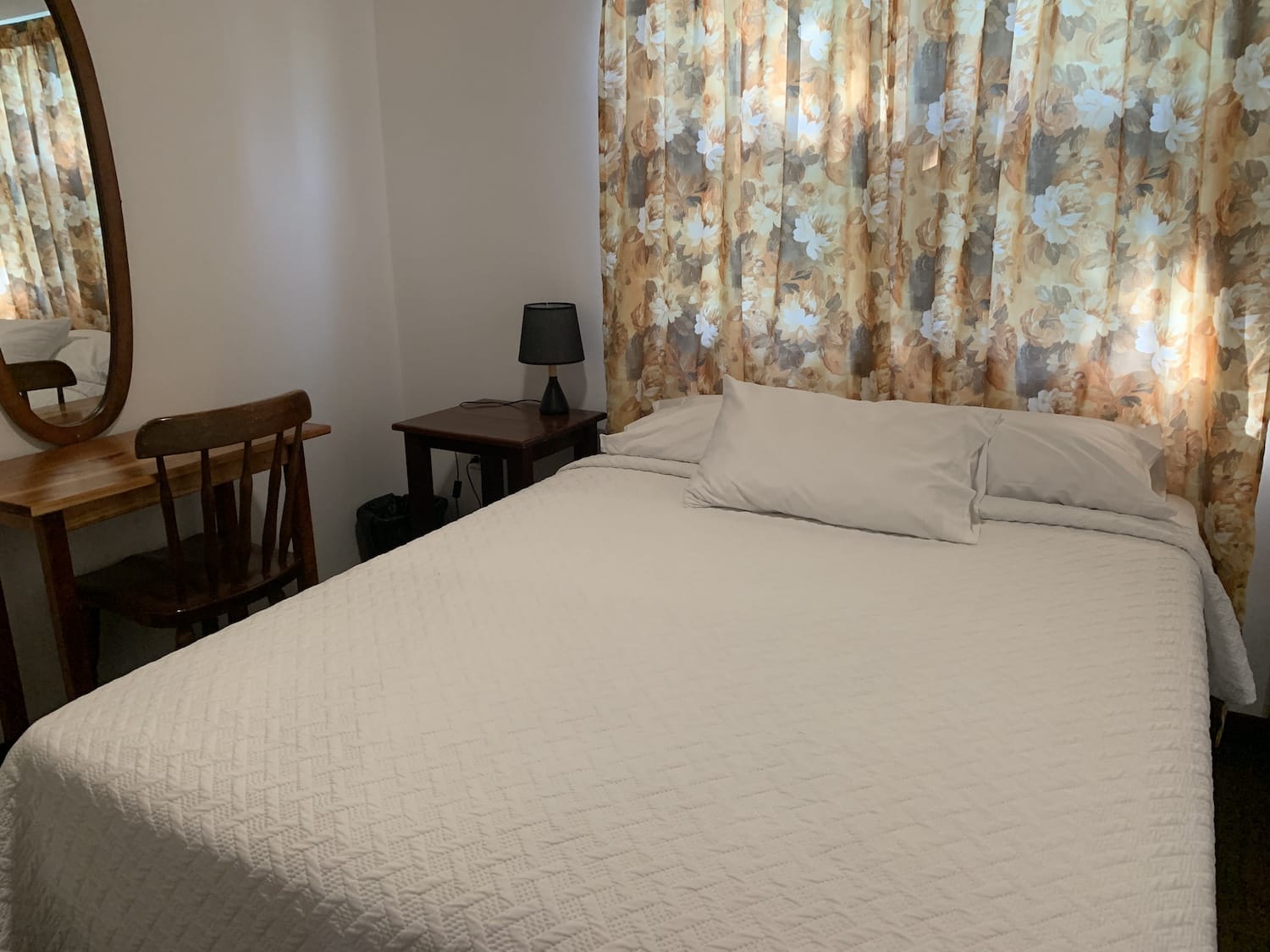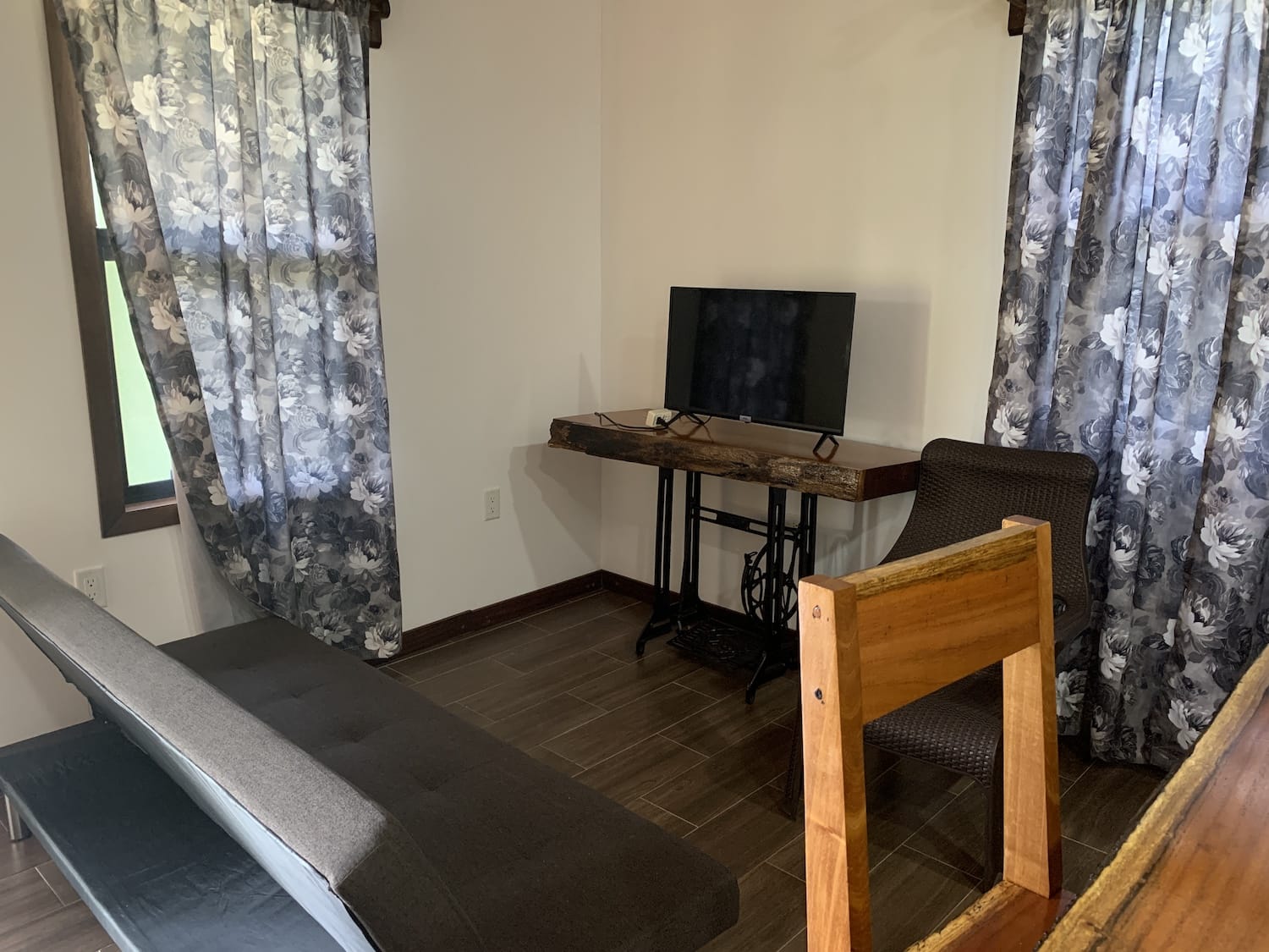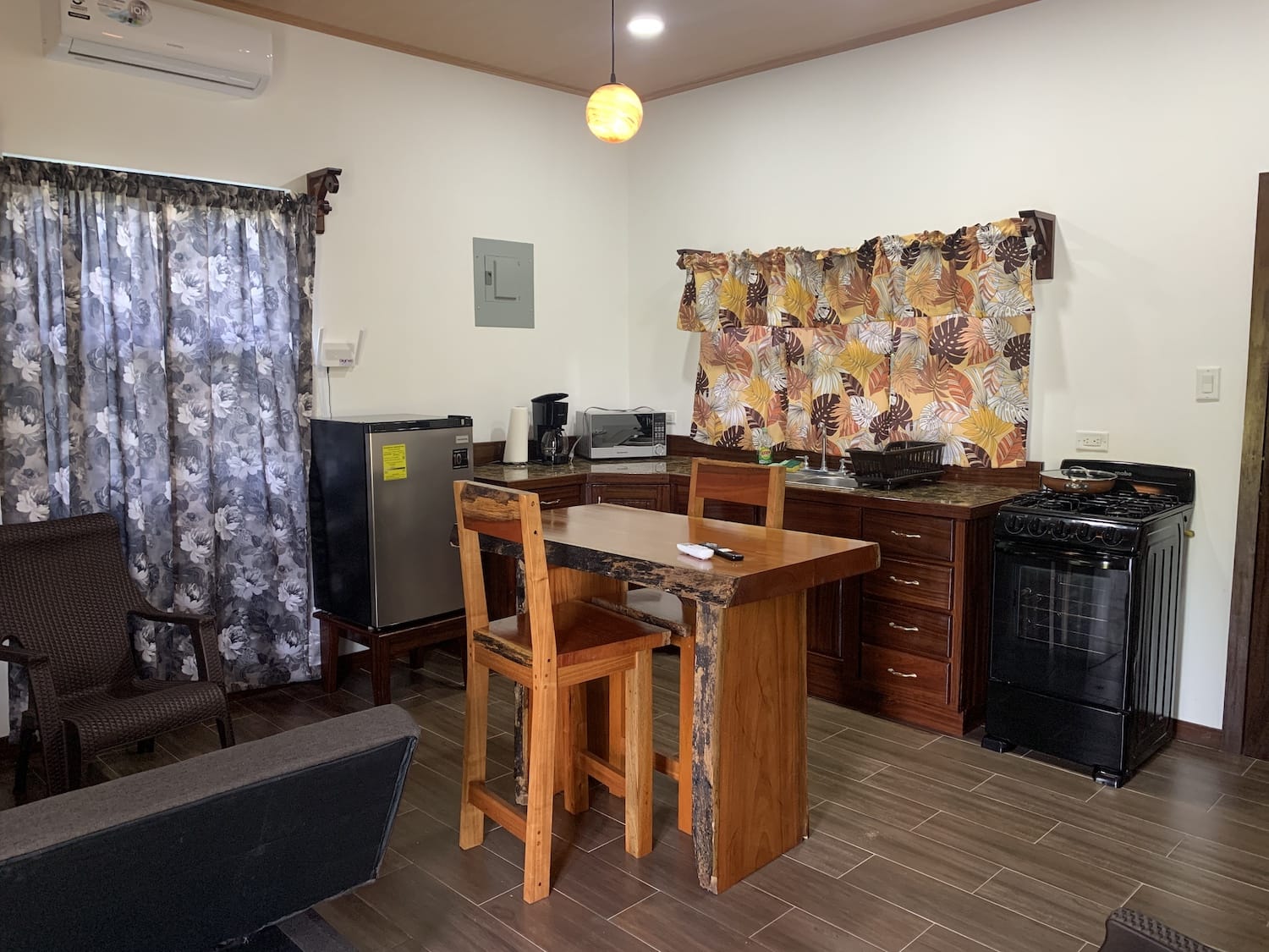 The Villa at Mahogany Villas offers a private and elevated stay, perfect for couples seeking comfort, space, and tranquility. This premium, standalone unit features a queen bed accommodating up to two guests, along with a private bathroom, air conditioning, television, and mini-fridge. A cozy living room area and a fully equipped kitchen provide the convenience of home, making the Villa ideal for longer stays or guests who enjoy preparing their own meals.